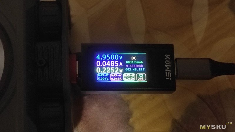 В режиме повербанка фонарь отдал примерно 3000мАч и 14338мВтч. Если перевести эту емкость с 5 вольт в 3.7в, то получится около 3800мАч. С учетом КПД повышайки заявленная емкость 5000 похожа на правду.