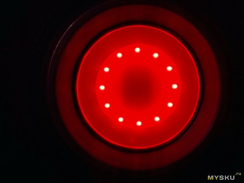 Если включен любой свет, даже красный, то включаются светодиоды индикации остатка заряда.