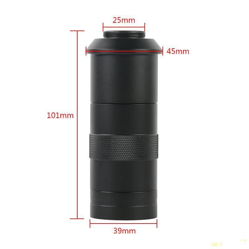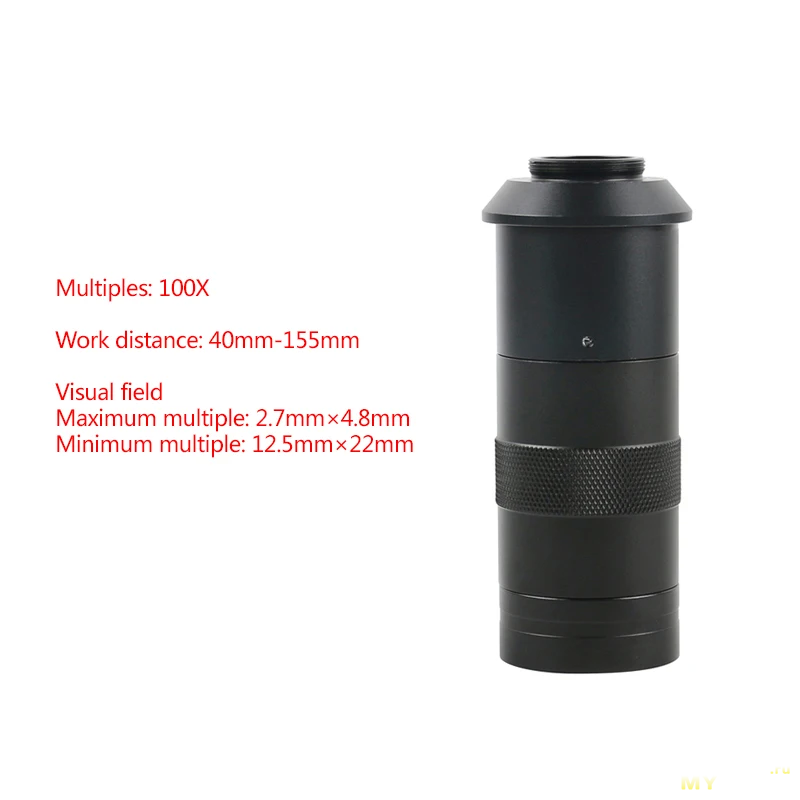 У этого же продавца можно купить комплект тушка+объектив на 700 руб дороже тушки. Я покупал объектив отдельно примерно за 1000 руб, дешевле взять его с тушкой в комплекте. Такой объектив обычно обозначается как 100X Lens, есть более продвинутая версии, но стоят дороже. У продавца, у которого я покупал сейчас его нет, но полно у других продавцов, в том числе у Eakins. На странице товара есть размеры, они совпадают с моими измерениями. ![]() | ![]() |
