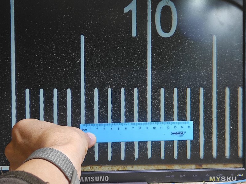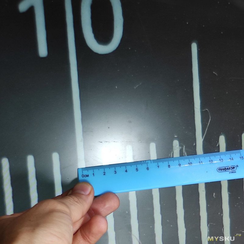 При этом в таком положении 4мм линейки увеличивались либо до 65мм, либо до 150мм в зависимости от зума объектива. То есть увеличение в 16-37 раз. И это при том, что объектив висит в полуметре от стола.