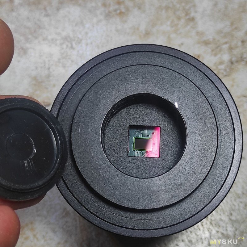 На верхней части объектива три разъема и кнопки. На нижней резьба C-MOUNT для объектива, за ним матрица. В описании пишут, что матрица сони. ![]() | ![]() |
