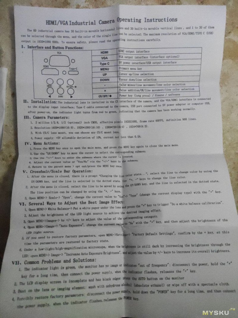 В этом обзоре хочу поделиться своим опытом сборки и использования микроскопа. У меня уже есть готовый микроскоп с экраном, который мне присылали на обзор. Но тот микроскоп занимает место на столе, у него мало возможностей к модернизации и значительно меньше возможностей, чем у моего. Пробую ставить к микроскопу разные объективы, в том числе старые советские фотообъективы. Возможности этого микроскопа — отдает картинку по HDMI или по VGA и при этом одновременно по кабелю USB. То есть аналоговый и цифровой выход могут работать одновременно, можно видеть картинку на компе и делать фото или записывать видео.