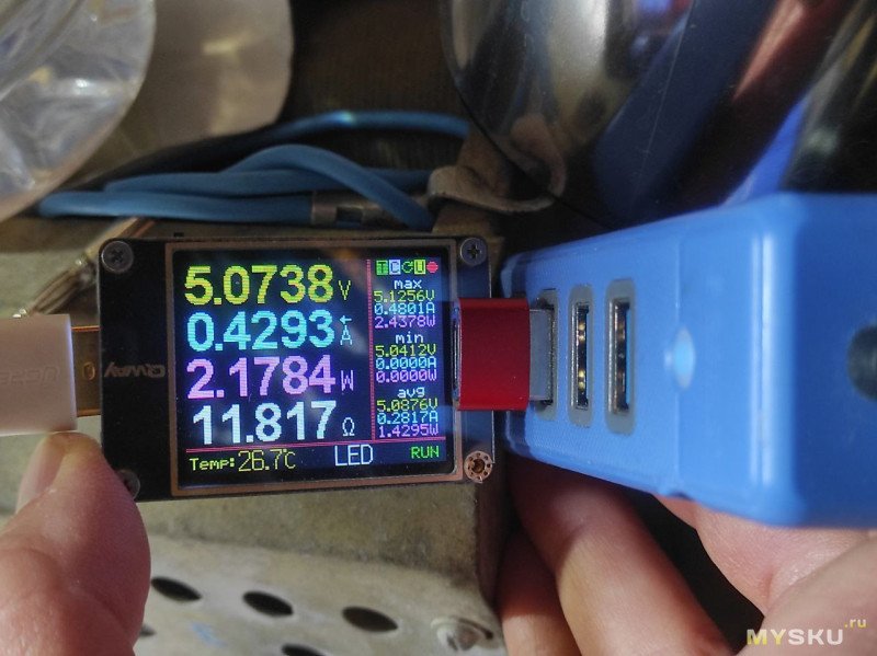 Тушка питается от USB, в режиме работы ток около 0,5А