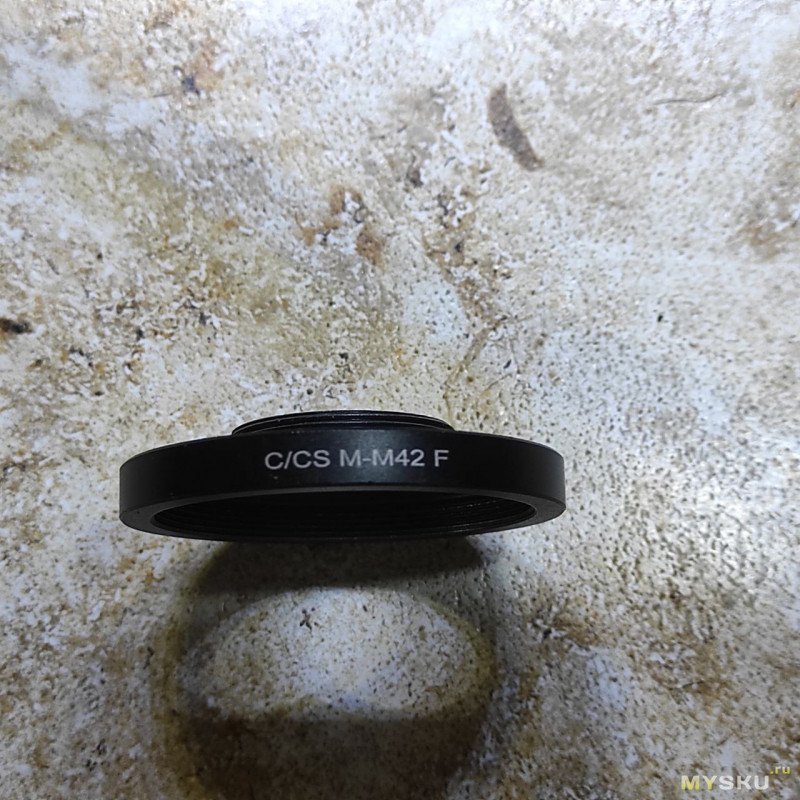 Просто прикрутить его к переходнику CS-M42 не получится, не фокусируется, нужно увеличивать расстояние до матрицы. Для этого можно использовать макрокольца.