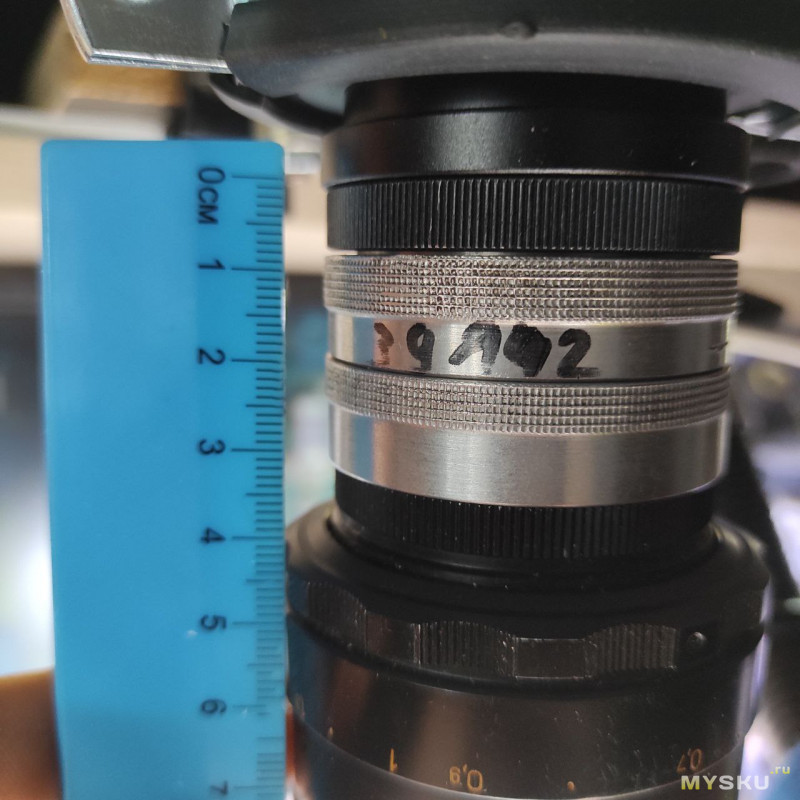 Чтоб сформировать картинку на матрице этого микроскопа, нужен объектив. Опять же можно купить стандартный объектив для микроскопа, а можно использовать объектив от зенита или другой советской фототехники. Хотя не обязательно от советской, Canon, Nikon, Sony и прочие тоже подходят.