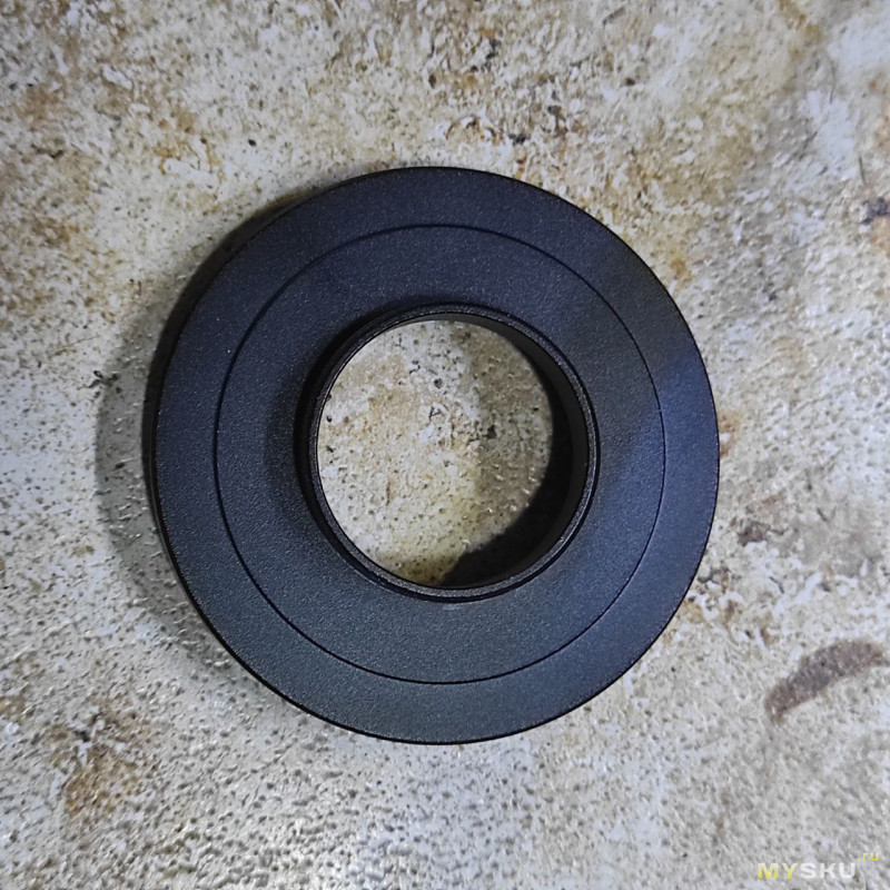Для крепления других объективов я купил такой переходник с C-mount на М42. По сути это простой адаптер с резьбы 25мм на 42мм. Он позволяет использовать с этим микроскопом другие объективы. По сути это просто блин, с одной стороны резьба 25мм, с другой 42мм.