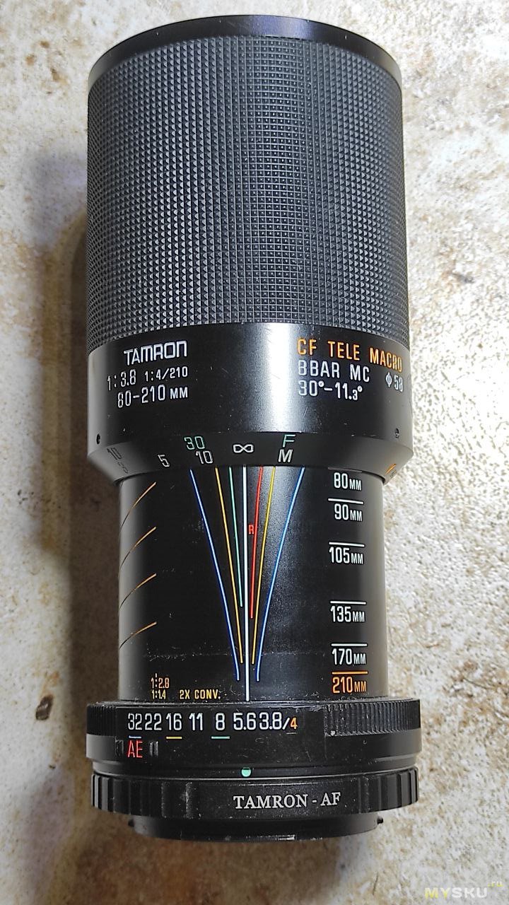 Вытащил из кладовки старый помповый объектив Тамрон 80-210, поставил два кольца, расстояние между байонетом объектива и переходником 30мм, от объектива до стола 57см.