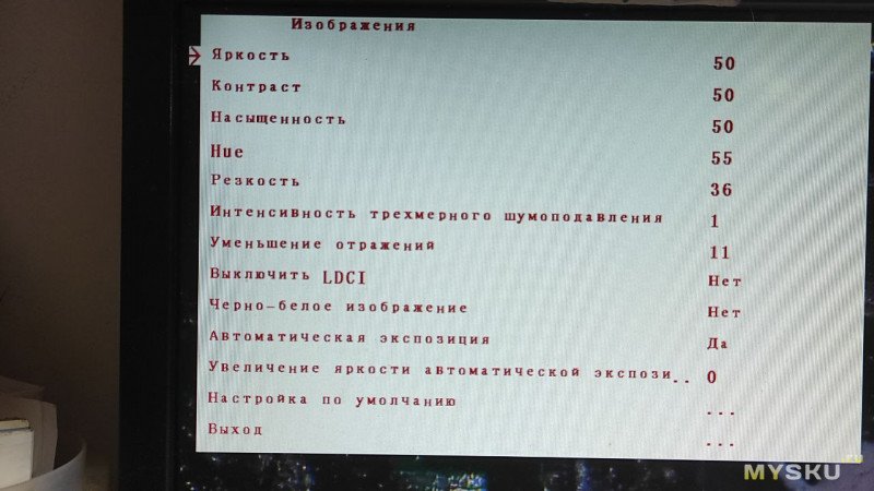 Подменю «Изображение». Настройка яркости, контрастности и прочего. Я поднял «уменьшение отражений», помогло от бликов на плате.