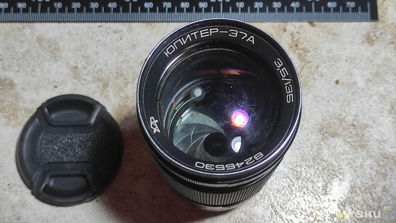 Его плюс — у него есть управление диафрагмой и он дешевый, минус — нет фокусировки. Еще у него резьба М39 и нужен переходник.