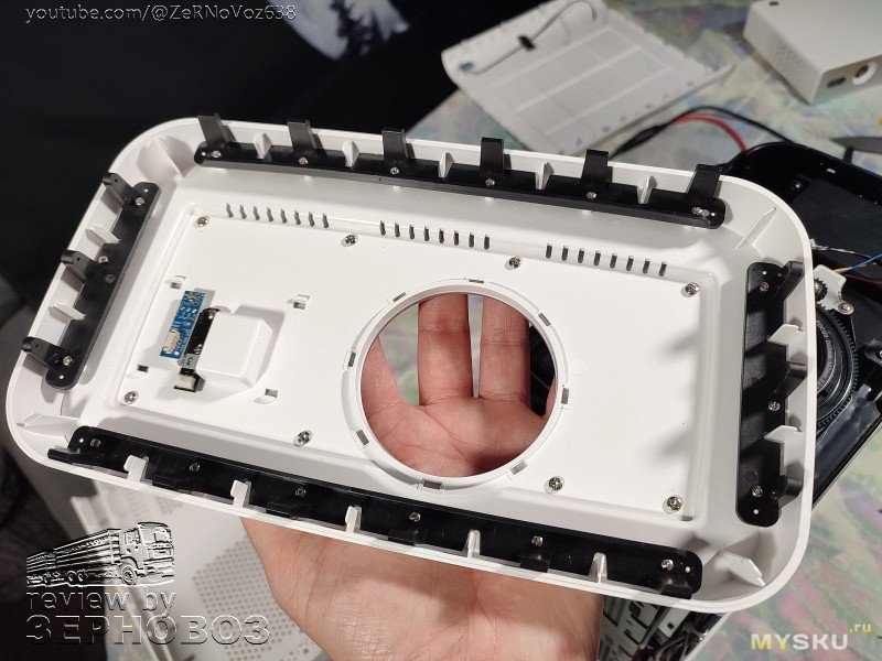 Так до конца и не понял в чём тайная задумка такой конструкции: под белой решёткой находится ещё и чёрная решётка. Сюда бы тонкий фильтр из любой ткани или что-то подобное. А иначе — просто декор и лишняя преграда перед динамиками.