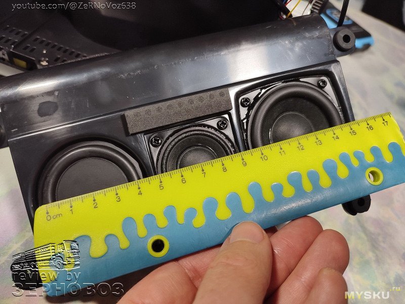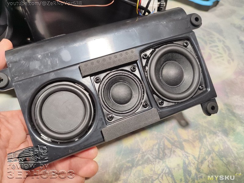 здесь всё намного интереснее: динамик СЧ (может его и считают НЧ...) и ВЧ (такой же как и справа)