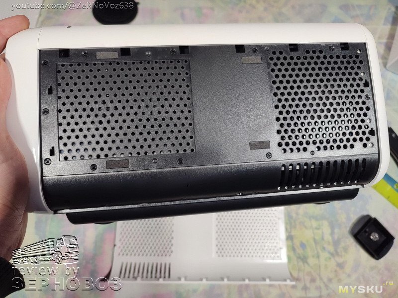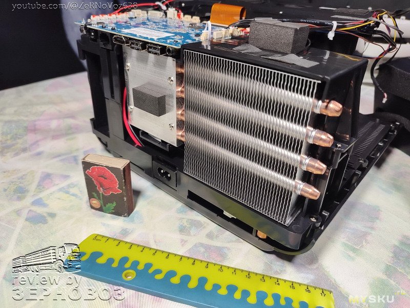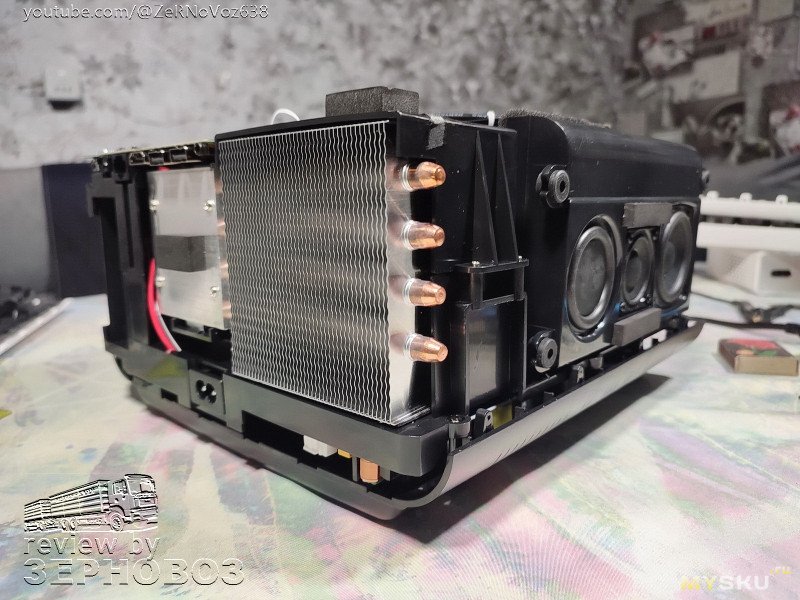 собственно, вся конструкция да и сам большой радиатор дают в сумме вполне тихий низко-температурный выхлоп, хотя потребление до ⚡ 120-195Вт в разных режимах, что очень немало