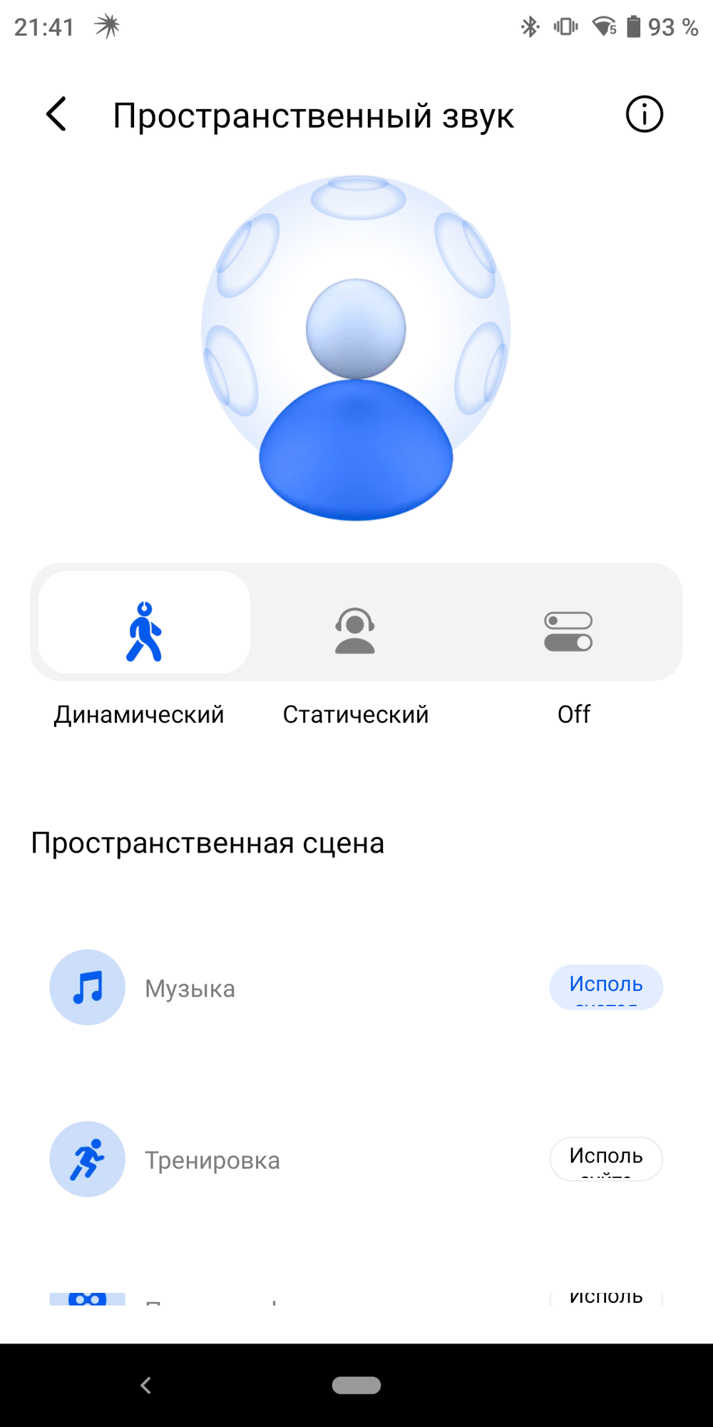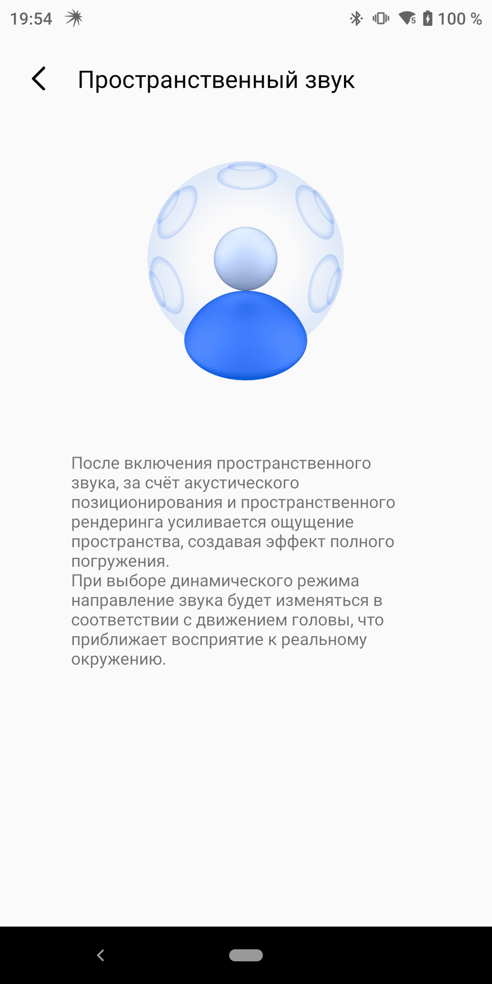 Пространственный звук создаёт эффект объёмного звучания, а в динамическом режиме имитирует движение источников звука вокруг слушателя – поворачивая голову вы всегда будете ощущать, что звук идет именно с одного направления, он будет как бы «перетекать» из одного уха в другое, при повороте головы. Вещь весьма специфическая, автору ни в одних наушниках она не пригодилась и кажется бесполезной.