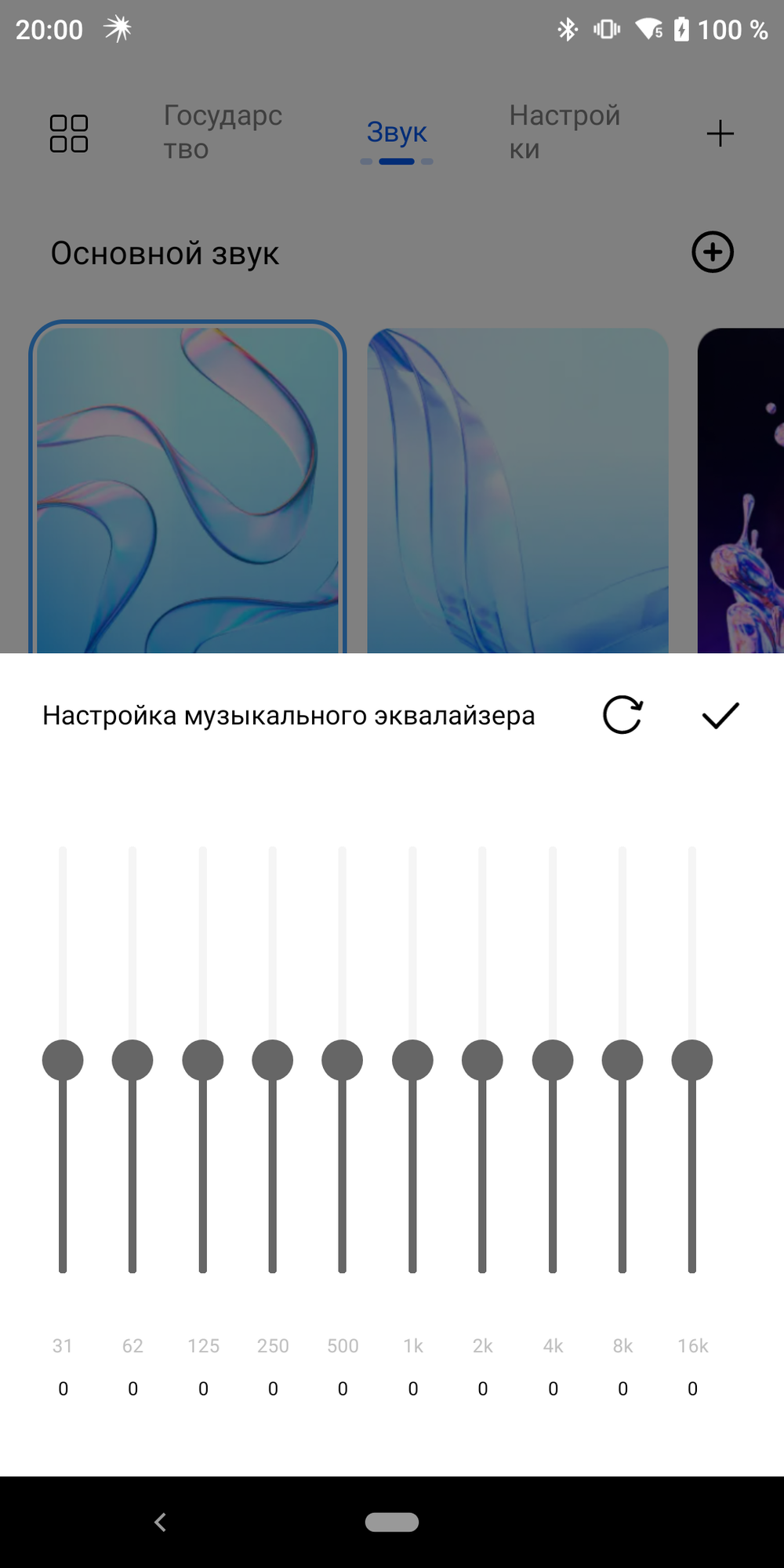 Раздел «Звук» позволяет поиграться с эквалайзером. Тут можно выбрали из 5 предустановленных пресетов или настроить его вручную – доступно 10 полос.