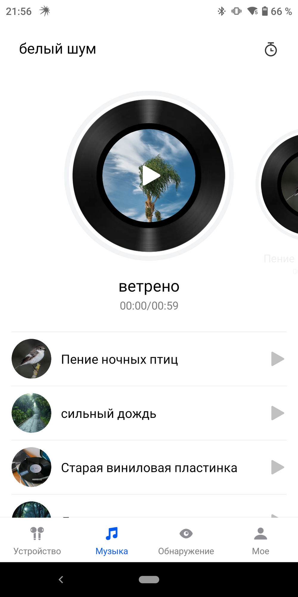 Снизу представлены основные 4 раздела, начнем с конца. Мое – редактирование своего профиля и проверка обновлений программы. Обнаружение – тут можно выбрать продукт и перейти к его инструкции в Вебе. Музыка – включение одного из, наверное не ошибусь, если скажу, релаксирующих звуковых файлов (звук дождя, волн и т.п.), с заданием продолжительности сего действа.