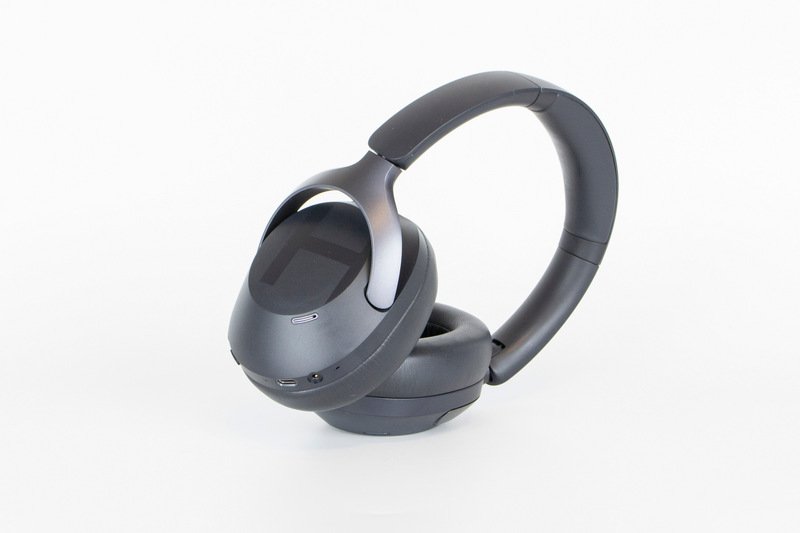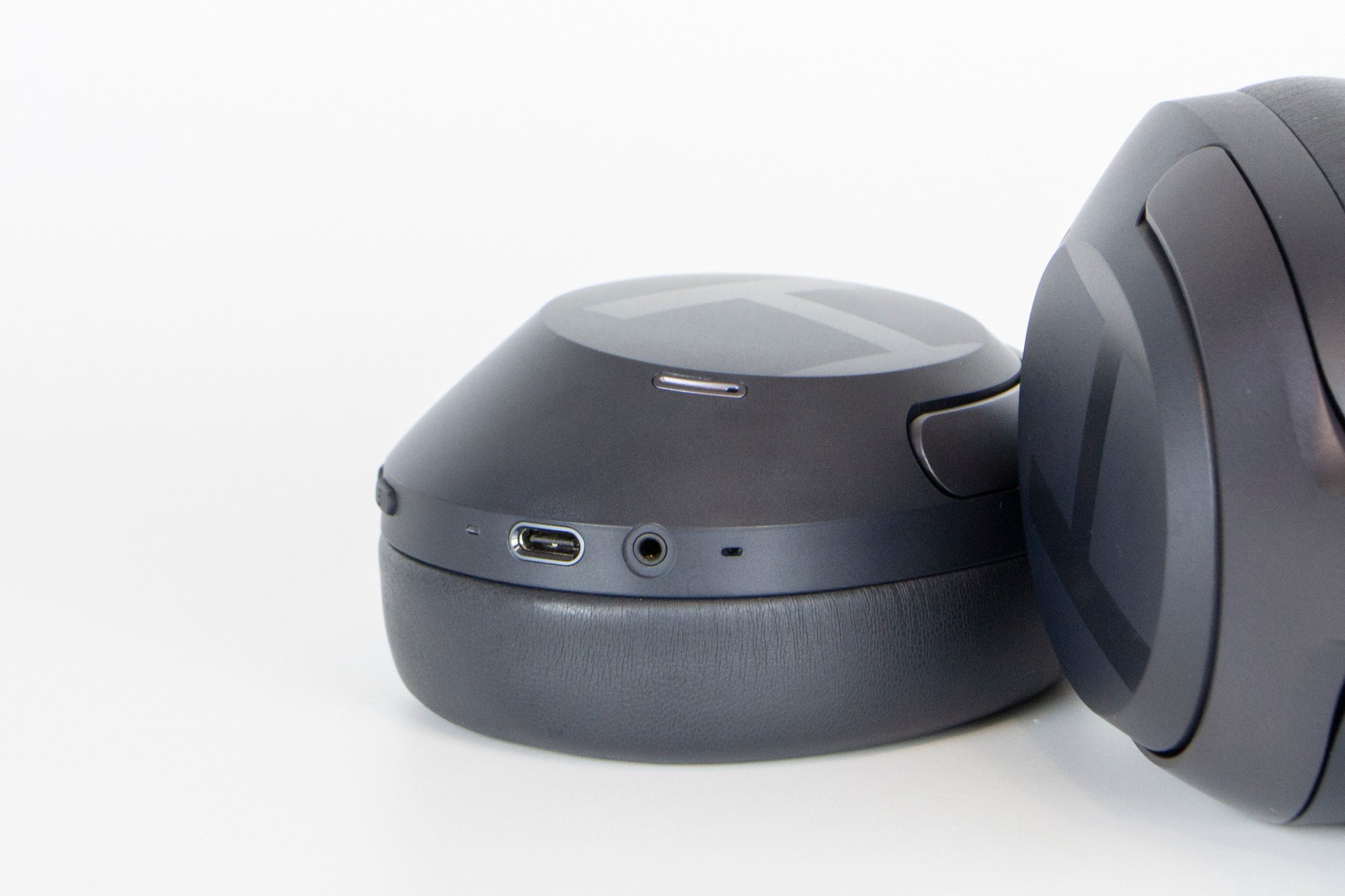 Левая чашка, как в большинстве случаев бывает, больше ничего на себе не несет и все размещено на правой. А именно – кнопка включения ANC, кнопки громкости, кнопка включения, индикатор, порт Type-C и порт 3,5 jack под внешний микрофон (и чуть дальше еще заметно отверстие для одного из микрофонов ANC).