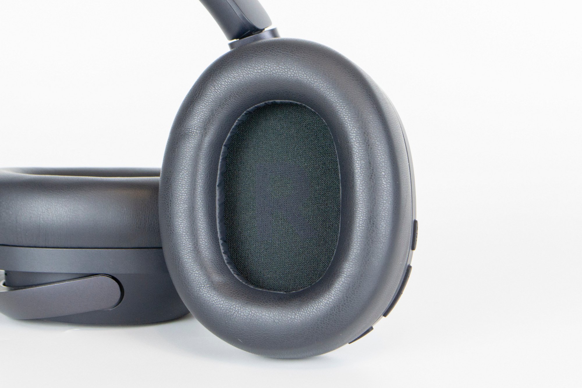 Амбушюр из экокожи имеет ширину 20 и толщину 20 мм. Это дает хороший уровень пассивной шумоизоляции, но в жару возможно ваши уши будут потеть. Кроме того, что чашки различаются визуально, из-за органов управления на них, отличить, где правый, а где левый излучатель можно и взглянув внутрь чашек – там находятся обозначения «L» и «R» (на фото видно слабо, но вживую читается без проблем).