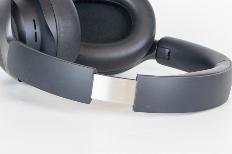 Наушники небольшие, примерно 20 на 16 см, длина оголовья 30,5 см в сложенном состоянии, а вес 289 грамм. В раздвинутом каждая из сторон прибавляет 3 см, что увеличивает оголовье до 36.5 см. Как обычно, оголовье снаружи сделано из пластика, как и раздвижной механизм, но последний усилен металлической вставкой – проверенное и надежное решение.