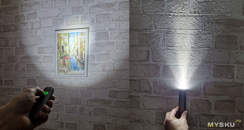 Но есть и плюс — толщина всего 16 мм, в кармане такой фонарь меньше занимает места, в отличие от круглого.