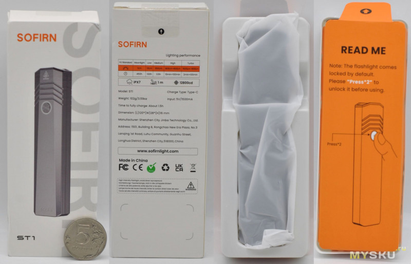 Изготовлено в Китае. Сразу видим как блокировать кнопку включения (2 клика).Комплектация: