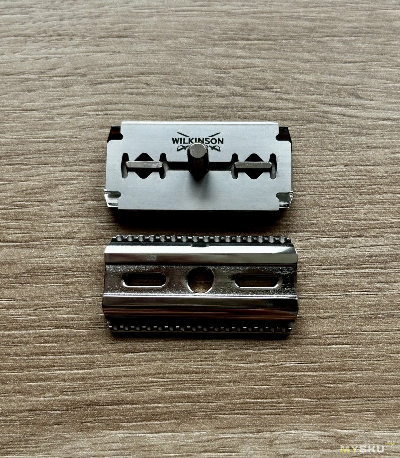 Лезвие устанавливается и достаётся из головы без проблем, не цепляется и становится идеально ровно. Ну и вылет лезвия естественно одинаковый по всей длине с обеих сторон.