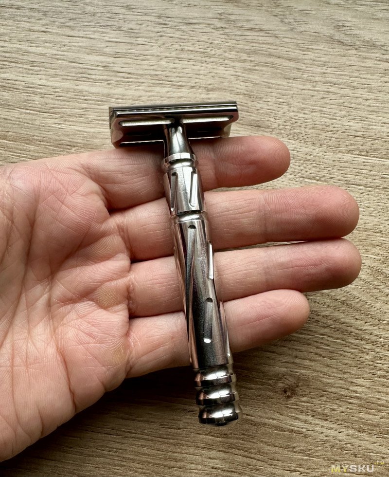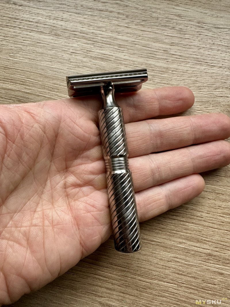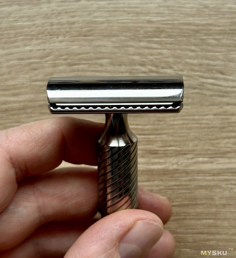 Данные модели бритв целиком сделаны из нержавеющей стали, но на Али есть также модель из титана с ручкой другого дизайна и модель с длинной ручкой из нержавейки с брашированной поверхностью.