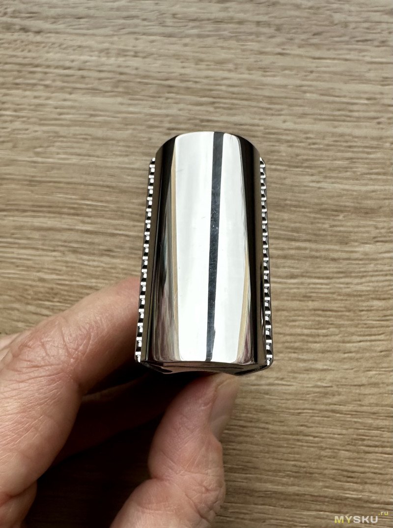 Kampfe делают свои бритвы на ЧПУ станках из алюминия, стали и титана.Данные модели бритв целиком сделаны из нержавеющей стали, но на Али есть также модель из титана с ручкой другого дизайна и модель с длинной ручкой из нержавейки с брашированной поверхностью.