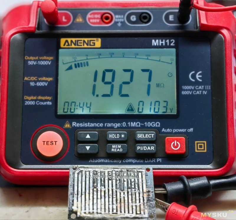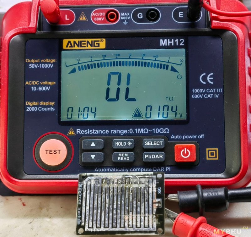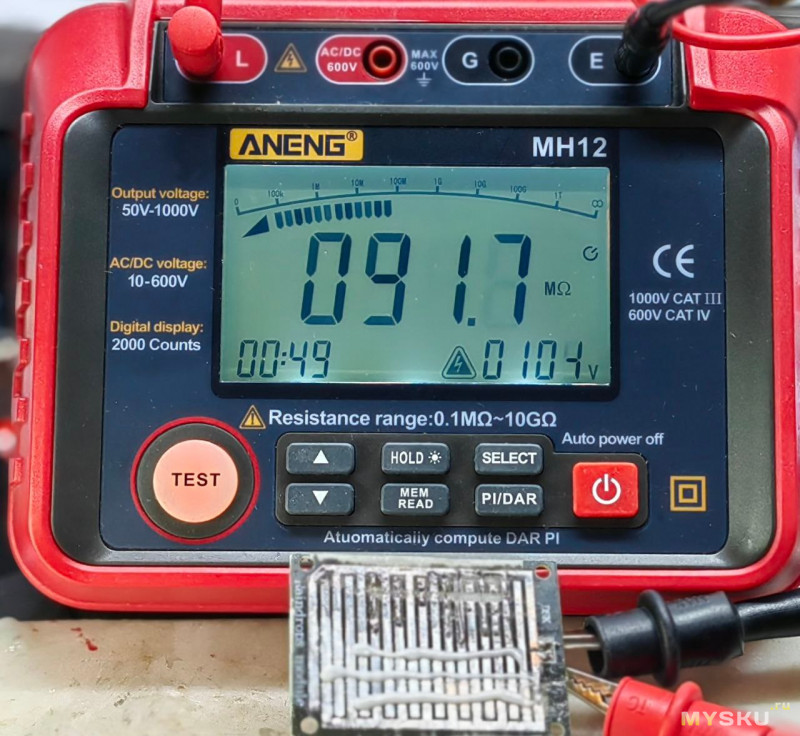 Добавлено: прогретая до 80 градусов тестовая плата, при измерениях на 100 вольт, показывает бесконечность, влажность в помещении 50%