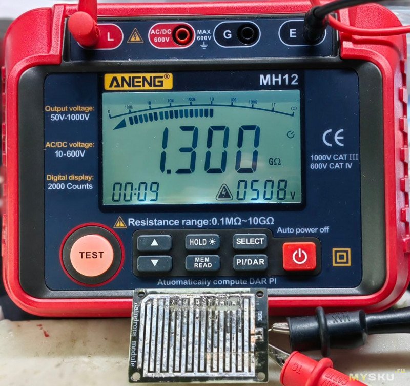 Переключаю мультиметр на 500 вольт и тут уже сопротивление 1.3GΩ.