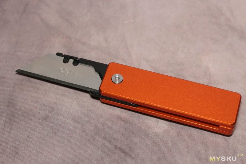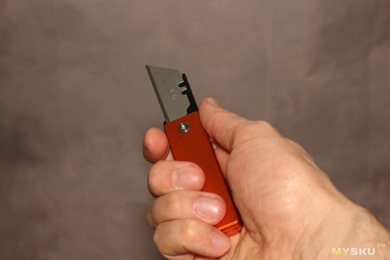 Регулярно ношу складной нож со сменными лезвиями в рюкзаке — штука очень полезная, не раз пригождался, и главное, что он всегда острый без мудоханья с заточкой. Героя сегодняшнего обзора мне было просто интересно покрутить в руках. Тем более, что знаю, куда его дальше деть — один из племянников отличается повышенной хозяйственностью и мастеровитостью, так что, уверен, он будет рад такому подарку на Новый год. Нож очень интересный — полностью металлический, красивый, с необычным способом раскладывания, запасным лезвием в рукояти и доступной всей режущей кромкой лезвия