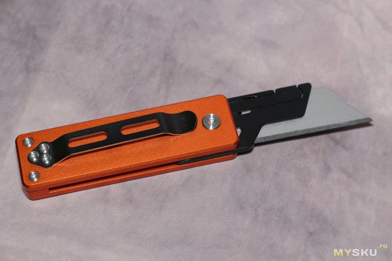 В раскрытом виде у ножа доступна для работы вся длина лезвия (за вычетом пары миллиметров режущей кромки, “съедаемых” креплением).