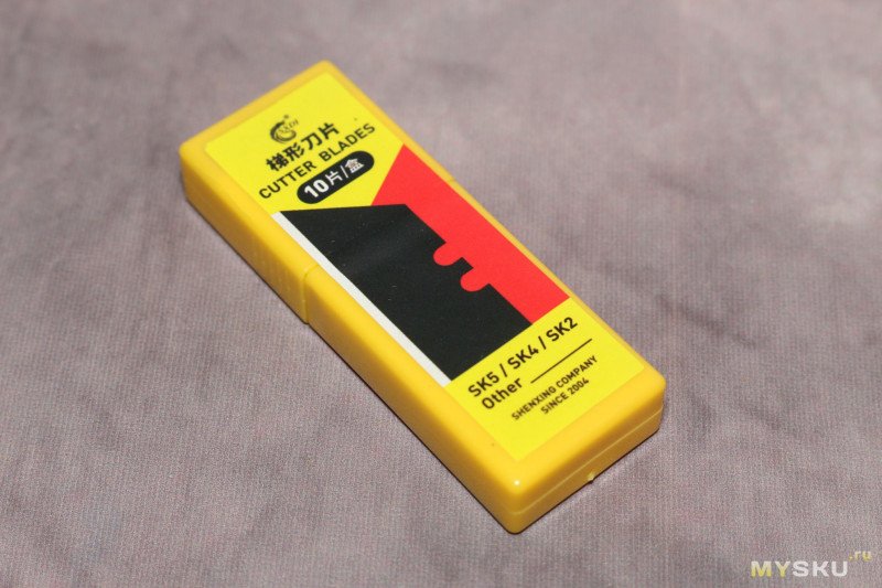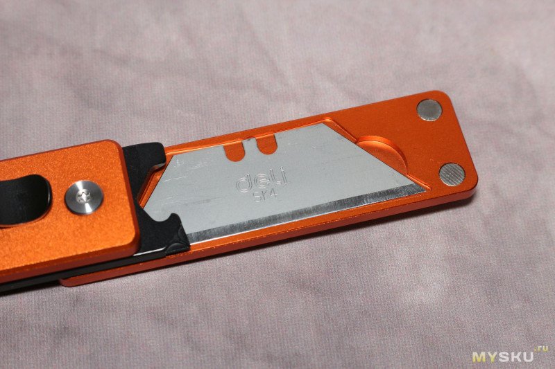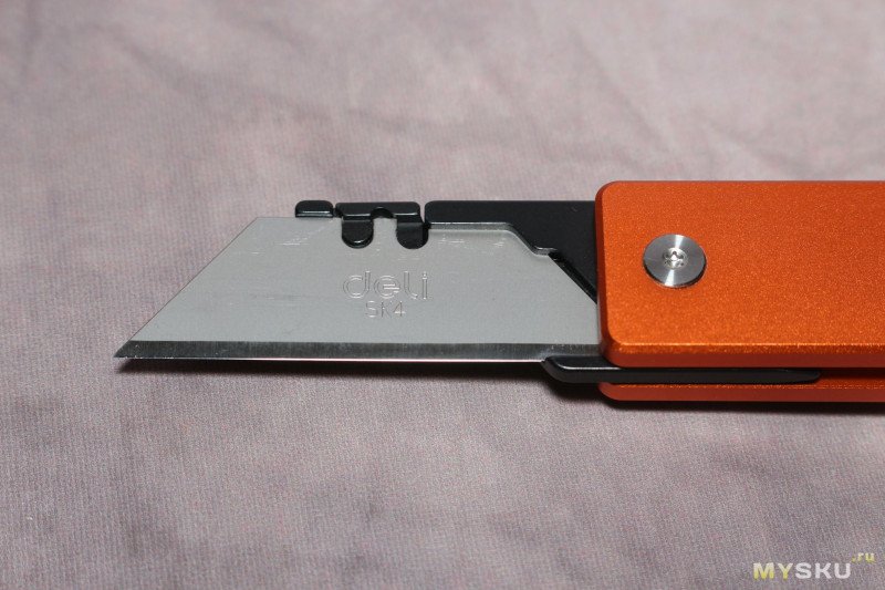 На кейсе написано, что лезвий 10, но везде в описаниях в магазине утверждается, что в комплекте их 5. Я не хотел отрывать наклейку, которая не дает открыть кейс, чтоб не портить вид подарка, поэтому установил лезвие Deli из купленных к своему ножу.