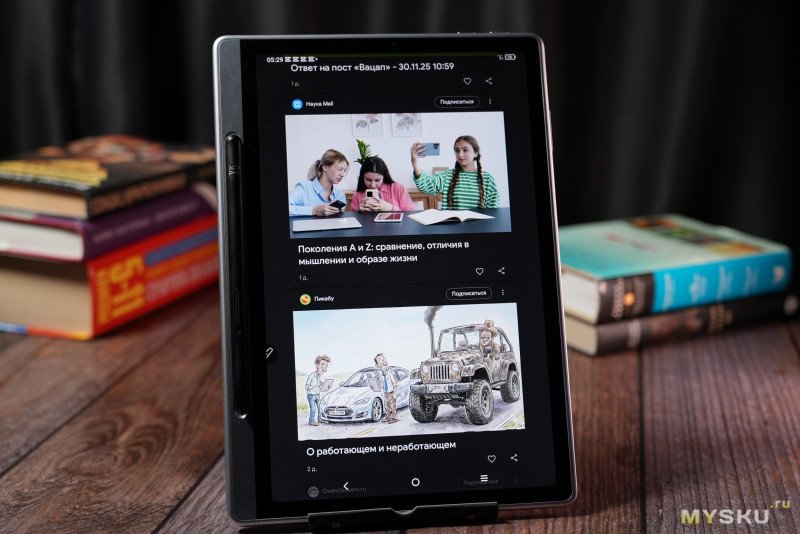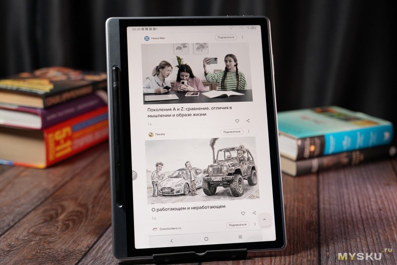По автономности, в смешанном сценарии, включая интернет-сёрфинг, чтение журналов, работа с заметками с использованием стилуса, выходит примерно 2 дня. После электронной книги на настоящем e-lnk экране, подумал что маловато, потом вспомнил, что это же Android-планшет с цветным LCD-экраном.