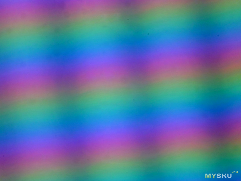 Поскольку дисплей имеет матированную поверхность, то структуру субпикселей рассмотреть будет затруднительно, но в целом можно понять, что расположены они в построчном порядке.