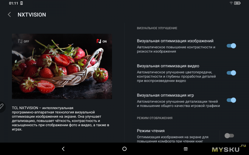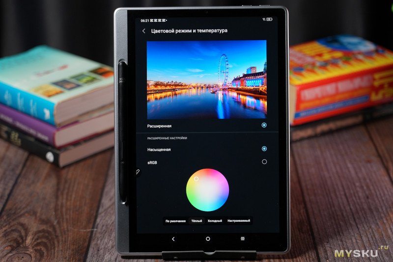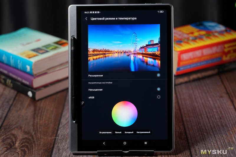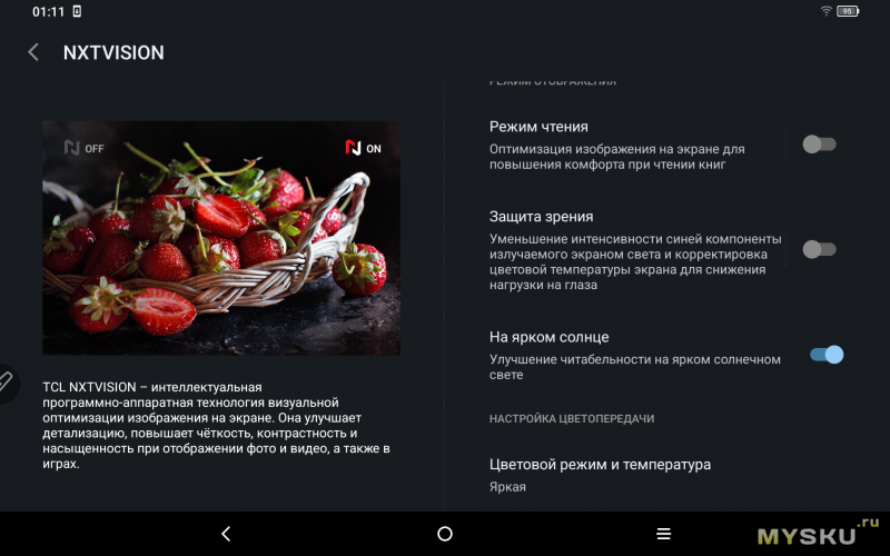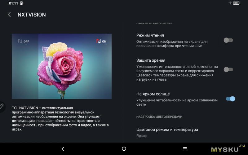 Более тонкая настройка цветовой температуры доступна из меню настроек дисплея в пункте ""