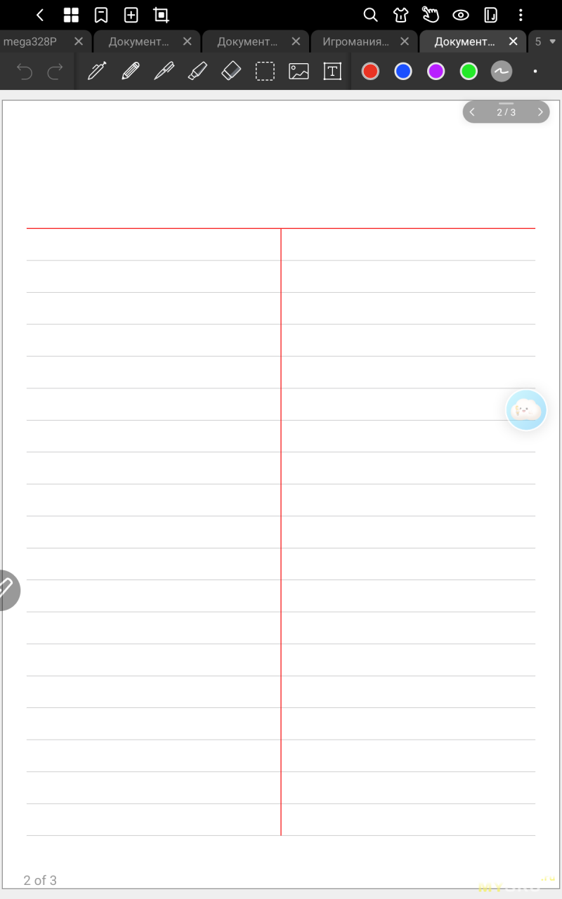 Есть меню шаблонов листов, на выбор доступны в линейку, в линейку с полями, в клеточку, или просто чистый белый лист.