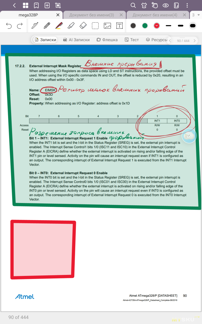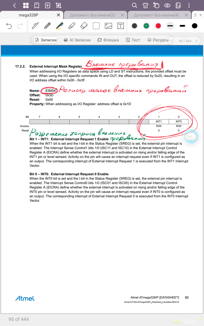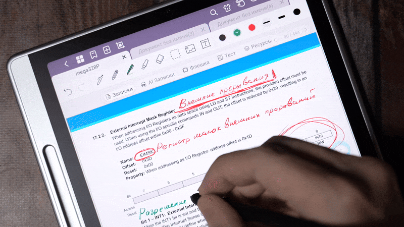 В целом, работать с документами очень удобно, выделять, отмечать, подписывать, помечать, подчёркивать — архиполезная штука лично для меня, поскольку раньше, когда я только изучал материалы по AVR, мне приходилось сначала делать на компьютере скрин фрагмента, потом вставлять в Paint и мышко-клавой уже рисовать для себя пометки. Очень много времени такие конспекты отнимали.