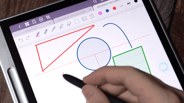 Для рисования фигур и линий предусмотрена простая механика, которую легко выучить. Например, для идеально ровной линии нужно провести стилусом по экран и не открывая от экрана, держать одну секунду в конечной точке, линия выровняется и впоследствии, пока крайние контрольные точки активны, её можно растянуть или развернуть в любую нужную сторону. Из линий можно составить какие-нибудь фигуры.