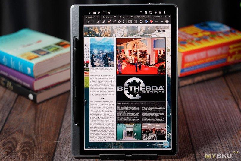 Матовый IPS-экран выдаёт естественную по цветам картинку, и поскольку это планшет, то здесь мне сразу захотелось вывести на экран страницу PDF игрового журнала, дабы оценить визуально цветопередачу.