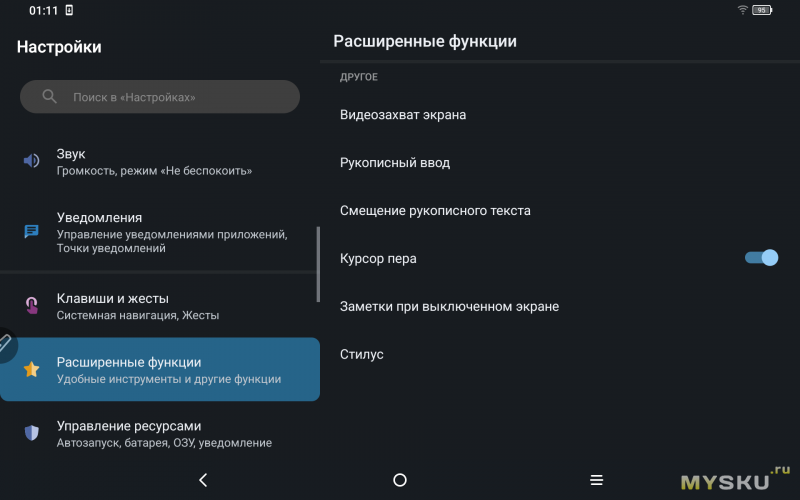 Среди специальных настроек есть раздел, посвященный стилусу, а точнее — настройке функции клавиши на стилусе.