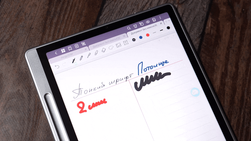 Написание текста шариковой ручкой (разумеется, не настоящей, а режим такой выбран для стилуса), тонким шрифтом (средним, т.к. можно сделать намного тоньше). Тактильные ощущения практически неотличимы от настоящей ручки.