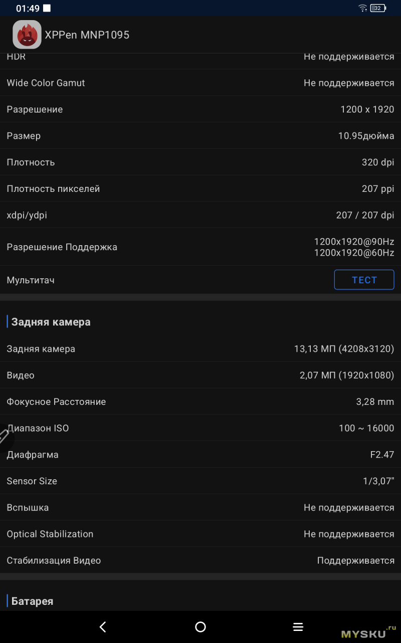 На самой толстой рамке находится магнитная ниша под пассивный стилус X3 Pro Pencil 2, который тоже идёт в комплекте и не требует питания для работы, однако наконечники при активной использовании будут расходоваться. На корпусе стилуса имеется одна функциональная кнопка, по нажатии на которую, стилус переходит в режим цифрового ластика для стирания штрихов или надписей.