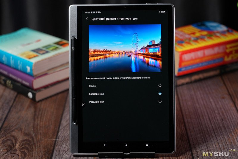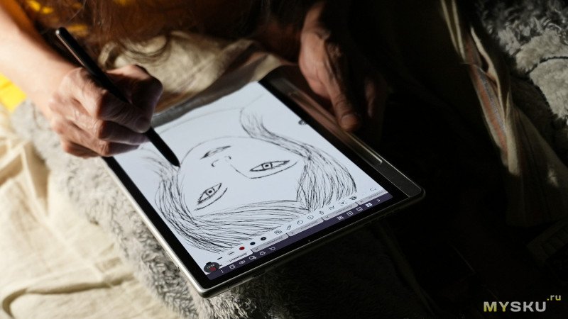 По тактильным ощущениям от работы стилусом сразу бросилось в глаза сходство со стилусом от имеющейся у меня электронной книги Onyx Boox Note с Wacom'овским слоем на дисплее. По качеству слежения разницы не заметил. По уровням нажатия Wacom разумеется впереди. Со стилусом от Samsung не сравнивал, но в отзывах говорят, что тактильная схожесть с обычной ручкой хуже, так как там используются прорезиненные наконечники, скользящие по глянцевому экрану, что потребует привыкания. Здесь же тактильность лучше, так как скольжение твёрдого наконечника по матовому экрану похоже на гелевую ручку, которой пишешь на бумаге. Здесь же привыкание к рисованию на экране практически моментальное. Матовое покрытие по тактильным ощущениям однозначно лучше, чем глянцевое, и отпечатков на порядок меньше собирает. Оценил реализацию работы трёх цветовых режимов, раньше без этого я как-то обходился, но данное новшество понравилось, так как сделав уплощённый стиль интерфейса без цветастых оттенков или чёрно-белую цветовую схему, появляется сходство с экранами электронных книг.