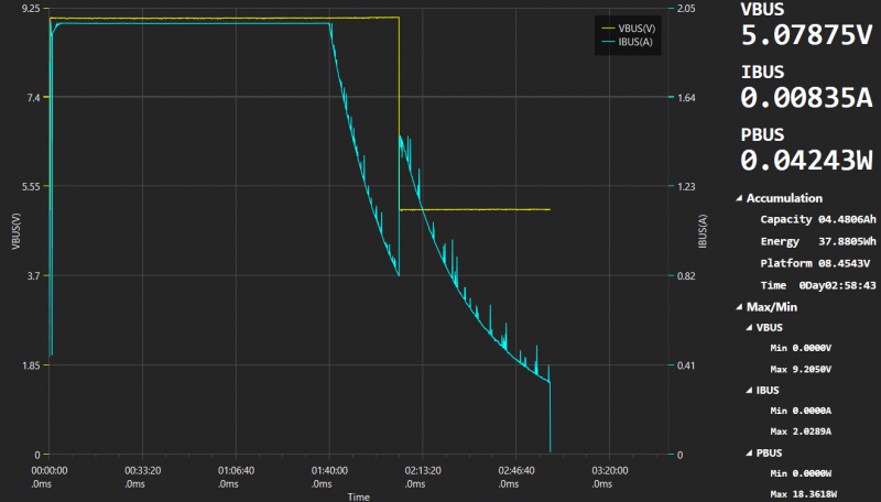 Зарядка производится сначала от 9В/2А, затем напряжение снижается до 5В. Общее время зарядки с 0% до 100% — около 3ч., что относительно долго.