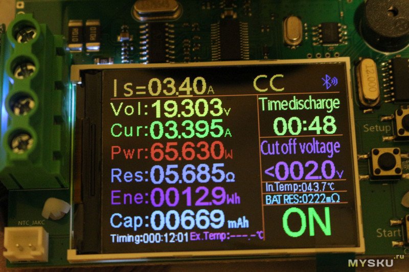 К сожалению, у меня нет 100-ваттного блока питания, самый мощный — на 65 Вт. Чуть погонял его электронной нагрузкой.