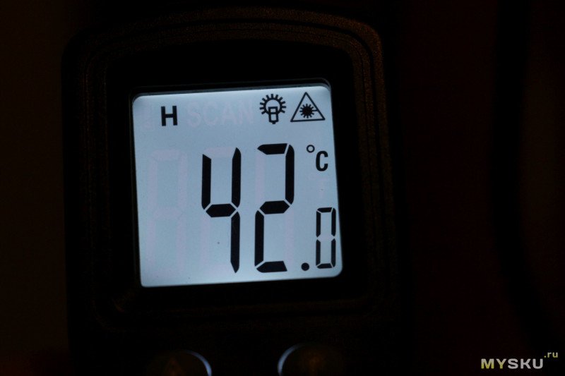 За пару минут он прогрелся до ± 40 градусов.