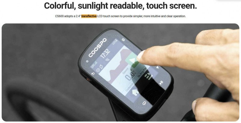 Появление модели c цветным и сенсорным экраном было ожидаемо, это тренд (как и выпуск задних радаров, он у COOSPO тоже вышел). Получилось неплохо, особенно учитывая цену на данный момент. Получаем в лице CS600 функциональный GPS‑велокомпьютер без переплат за премиальный бренд, но с хорошим чипом GPS + BDS + QZSS + GLONASS + GALILEO. По сути «рабочая лошадка» с навигацией и хорошей автономностью. Датчики поддерживаются все, экран не хуже конкурентов (Magene, недорогих iGPSPORT), защита от воды, структура оболочки. Приложение с множеством настроек.