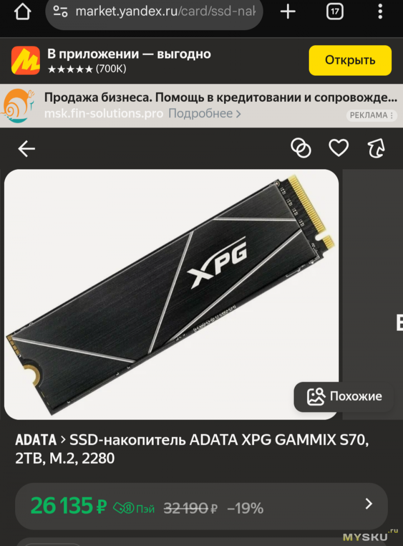 - Цена: 600 руб (ссылка на лот 240Гб за 1943 рэ)