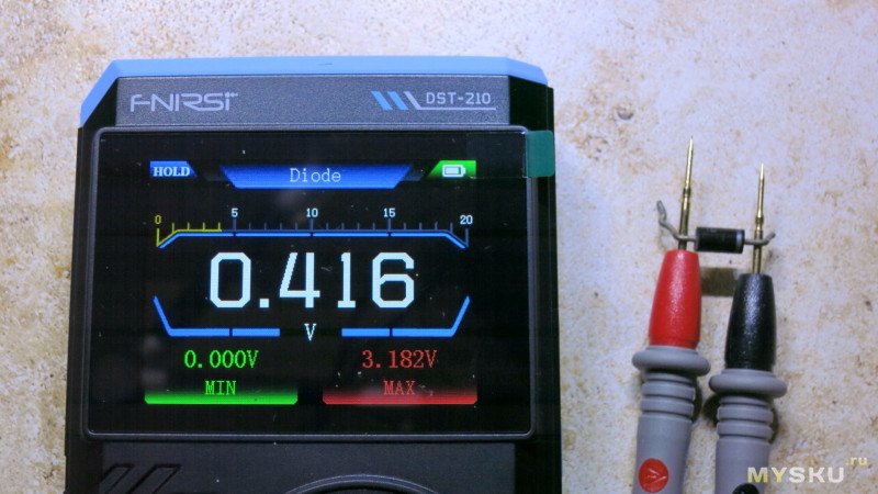 Пятый режим проверки диодов.При проверке на щупах примерно 4 вольта.
