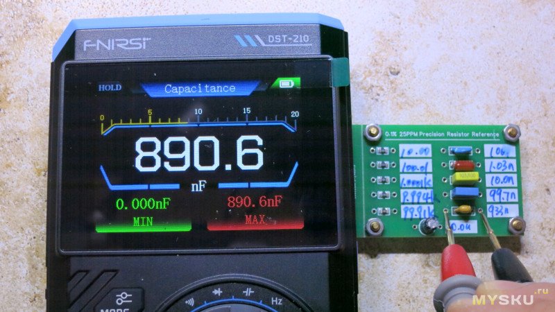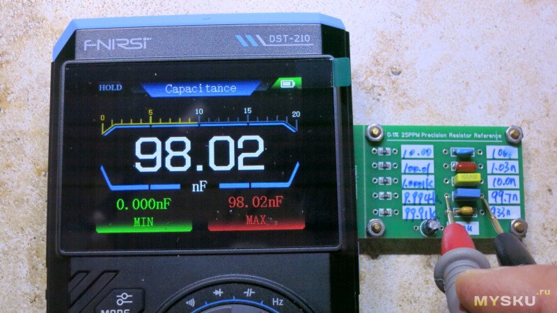 Шестой режим это проверка емкостей. Малые емкости измеряет нормально.